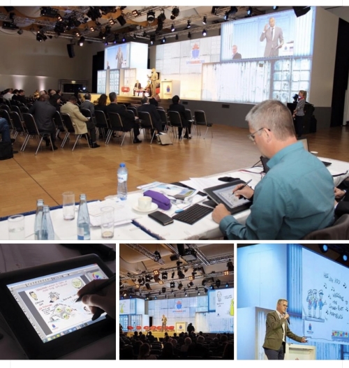 Regelmatig treed ik als digitaal cartoonist om een congres of themabijeenkomst vast te leggen in digitale cartoontjes.